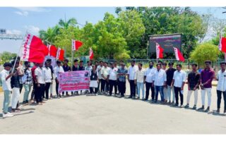 பாரதிதாசன் பல்கலைக்கழகம் முன்பு அனைத்திந்திய மாணவர் பெருமன்றத்தினர் ஆர்ப்பாட்டம்
