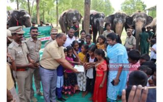 திருச்சியில் யானைகளுக்கு கேக் வெட்டி கொண்டாட்டம்