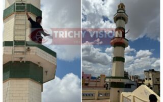 பள்ளிவாசல் கோபுரத்தில் ஏறி போராட்டத்தில் ஈடுபட்ட நபரால் பரபரப்பு