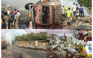 விபத்து: ரூ.5லட்சம் மதிப்பிலான தீப்பெட்டி பண்டல்களுடன் லாரி எரிந்து…