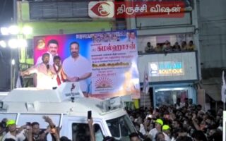 திமுக வேட்பாளரின் தந்தைக்கு வாக்கு சேகரித்த கமலஹாசன் கூட்டத்தில்…