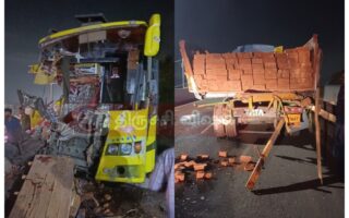 லாரி – தனியார் சொகுசு பேருந்து மோதி விபத்து…