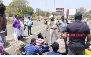 திருச்சி – புதுக்கோட்டை தேசிய நெடுஞ்சாலையில் சாலை மறியல்