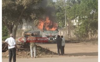கனரக லாரியில் தீ – அதிர்ஷ்டவசமாக உயிர் தப்பிய…
