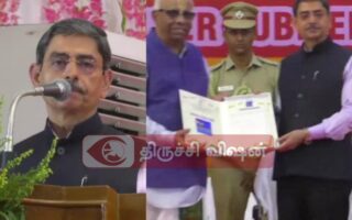 திருச்சி விழாவில் கல்லூரி ஓட்டுநர்களை பாராட்டிய ஆளூநர்