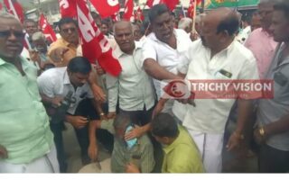 திருச்சியில் போக்குவரத்து தொழிலாளர்கள் மறியல் போராட்டம் – தொழிலாளி…