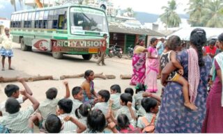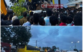 திருச்சியில் அரசு பள்ளி மாணாக்கர் பெற்றோருடன் சாலை மறியல்