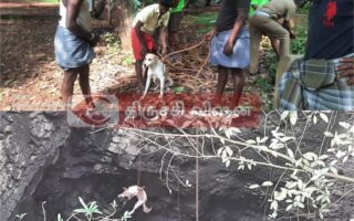 கிணற்றுக்குள் விழுந்த நாயை மீட்ட தீயணைப்புத் துறையினர்
