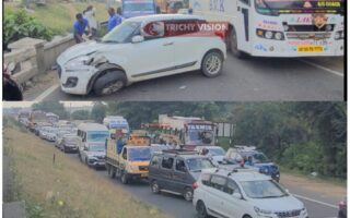 திருச்சியில் கார் விபத்து – போக்குவரத்து பாதிப்பு