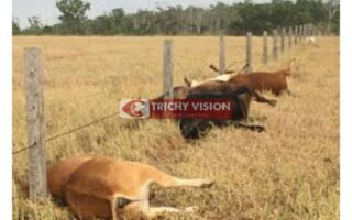 திருச்சியில் மின்னல் தாக்கி 3 பசுமாடுகள் உயிரிழப்பு