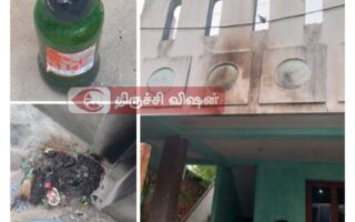 திருச்சியில் கட்சி தலைவர் வீடு மீது பெட்ரோல் குண்டு…