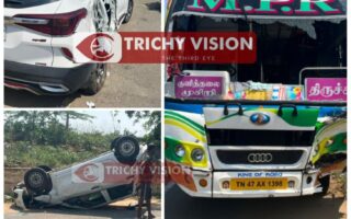திருச்சி – கரூர் நெடுஞ்சாலையில் பேருந்து, 2 கார்…