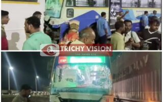 திருச்சி: கார் மீது சரிந்து விழுந்த கண்டெய்னர் – தம்பதியினர் அதிர்ஷ்டவசமாக உயிர் தப்பினர்!
