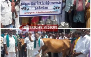 சாலையில் பசும் பாலை ஊற்றி மாடுகளுடன் விவசாயிகள் மறியல்…