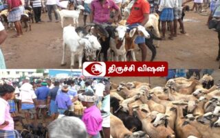 தீபாவளி பண்டிகையை முன்னிட்டு சமயபுரம் ஆட்டு சந்தையில் ஆடுகள்…
