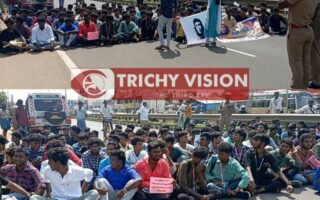 திருச்சி – தஞ்சை தேசிய நெடுஞ்சாலையில் மாணவர்கள் சாலை…