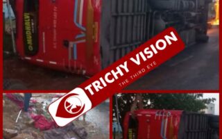 திருச்சி மதுரை தேசிய நெடுஞ்சாலையில் ஆம்னி பேருந்து கவிழ்ந்து…