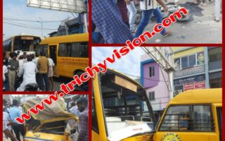 திருச்சியில் தனியார் பாலிடெக்னிக் பேருந்தும், பள்ளி வேனும் நேருக்கு…
