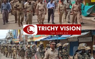 திருச்சி மாநகர காவல்துறையினர் கொடி அணிவகுப்பு
