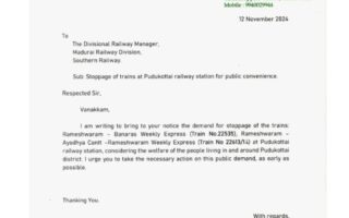 புதுக்கோட்டை இரயில் நிலையத்தில் இரயில்கள் நின்று செல்ல வேண்டி…