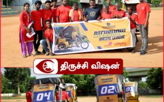 திருச்சியில் நடைபெற்ற ரிக்சா ரேஸ், கல்லூரி மாணவர்கள் பங்கேற்பு