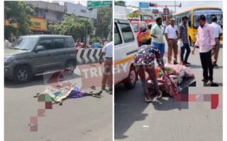 தனியார் பேருந்து மோதி மகன் கண் முன்னே தாய்…