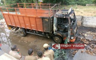 சாலையோரம் நின்று கொண்டிருந்த லாரி திடீர் தீ பற்றி…