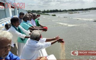 திருச்சி முக்கொம்புவிற்க்கு வந்த காவிரி நீரை மலர்தூவி விவசாயிகள்…