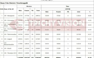 திருச்சி மாவட்டத்தில் ஒரு மணி நிலவரப்படி 41.83 சதவீத…