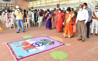கல்லூரி மாணவிகள் பங்கேற்ற வாக்காளர் விழிப்புணர்வு ரங்கோலி கோலப்போட்டி.