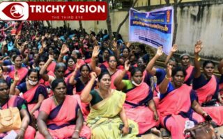 திருச்சியில் அங்கன்வாடி பணியாளர்கள் காத்திருப்பு போராட்டம்