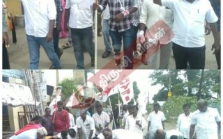 கை கால்களில் கட்டுகளுடன் சாலையில் ஆர்ப்பாட்டம்