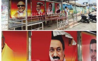 திருச்சி பேருந்து நிறுத்த நிழற்குடையில் முதலமைச்சர் புகைப்படம் கிழிப்பு…