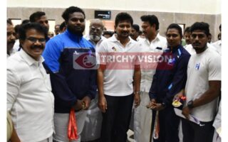 அமைச்சர் உதயநிதியிடம் வாழ்த்து பெற்ற திருச்சி வீரர்- வீராங்கனை