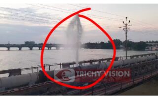காவிரி ஆற்றில் குழாயிலிருந்து வானை நோக்கி பீய்ச்சிய கழிவுநீர்