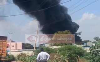 திருச்சியில் பிளாஸ்டிக் குடோனில் தீ விபத்து வானில் கரும்புகை…