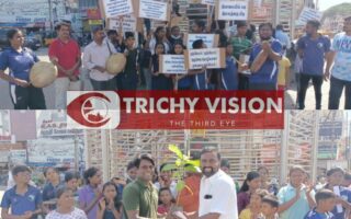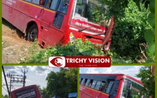 திருச்சியில் உயரழுத்த மின் கம்பத்தில் சாய்ந்த பேருந்து –…
