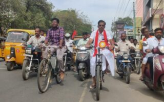 திருச்சி மாநகராட்சியில் பதவியேற்க சைக்கிளில் வந்த கவுன்சிலர்