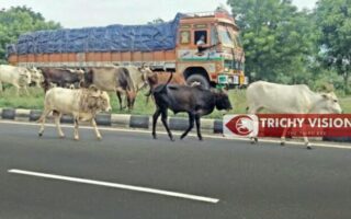 திருச்சி தேசிய நெடுஞ்சாலையில் சுற்றித்திரியும் கால்நடைகளால் விபத்து ஏற்படும்…