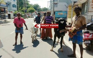 திருச்சி மாநகராட்சியிடம் மாட்டிக்கொண்ட 76 மாடுகள்