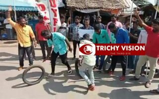 திருவெறும்பூரில் இந்திய ஜனநாயக வாலிபர் சங்கத்தினர் டயர் ஓட்டி…