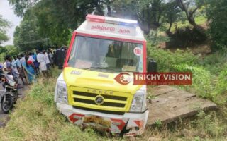 மணப்பாறை அருகே பள்ளத்தில் இறங்கிய 108 ஆம்புலன்ஸ் டிரைவரின்…