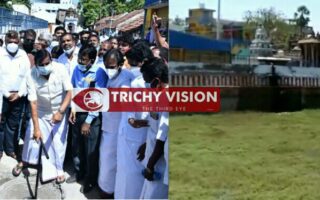 திருச்சியில் குளத்தில் அமைச்சர் திறந்துவிட்ட தண்ணீரை நிறுத்தியது யார்…