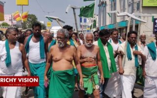 திருச்சியில் ஏர் கலப்பையுடன் விவசாயிகள் சாலை மறியல்!!
