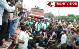 விரைவு ரயிலை மறிக்க ரயில் முன்பு ஓடிய போராட்டக்காரர்கள்…