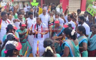 பெண்களுடன் கோலாட்டம் ஆடி வாக்கு சேகரித்த திருச்சி அதிமுக…