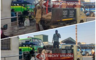 திருச்சியில் குப்பை அள்ளும் வண்டியில் வந்திறங்கிய அரிசி மூட்டைகள்
