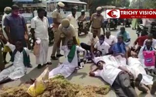 திருச்சியில் டிராக்டர் பேரணி – விவசாயிகள் சாலை மறியல்!!