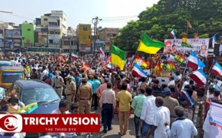 திருச்சியில் கருப்புக்கொடி ஏந்தி ஆயிரத்திற்கும் மேற்பட்டோர் கண்டன ஆர்ப்பாட்டம்!!