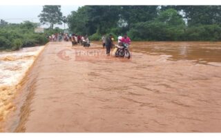 தரைப்பாலத்தை மூழ்கடித்தவாறு ஆர்ப்பரித்து சென்ற மழைநீர் – ஆபத்தை…